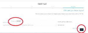 لرفع الملف يجب عليك الدخول أولاً لخيار “استيراد المنتجات” و الذي وضع اختصاره بالسهم الموجه لأعلى.