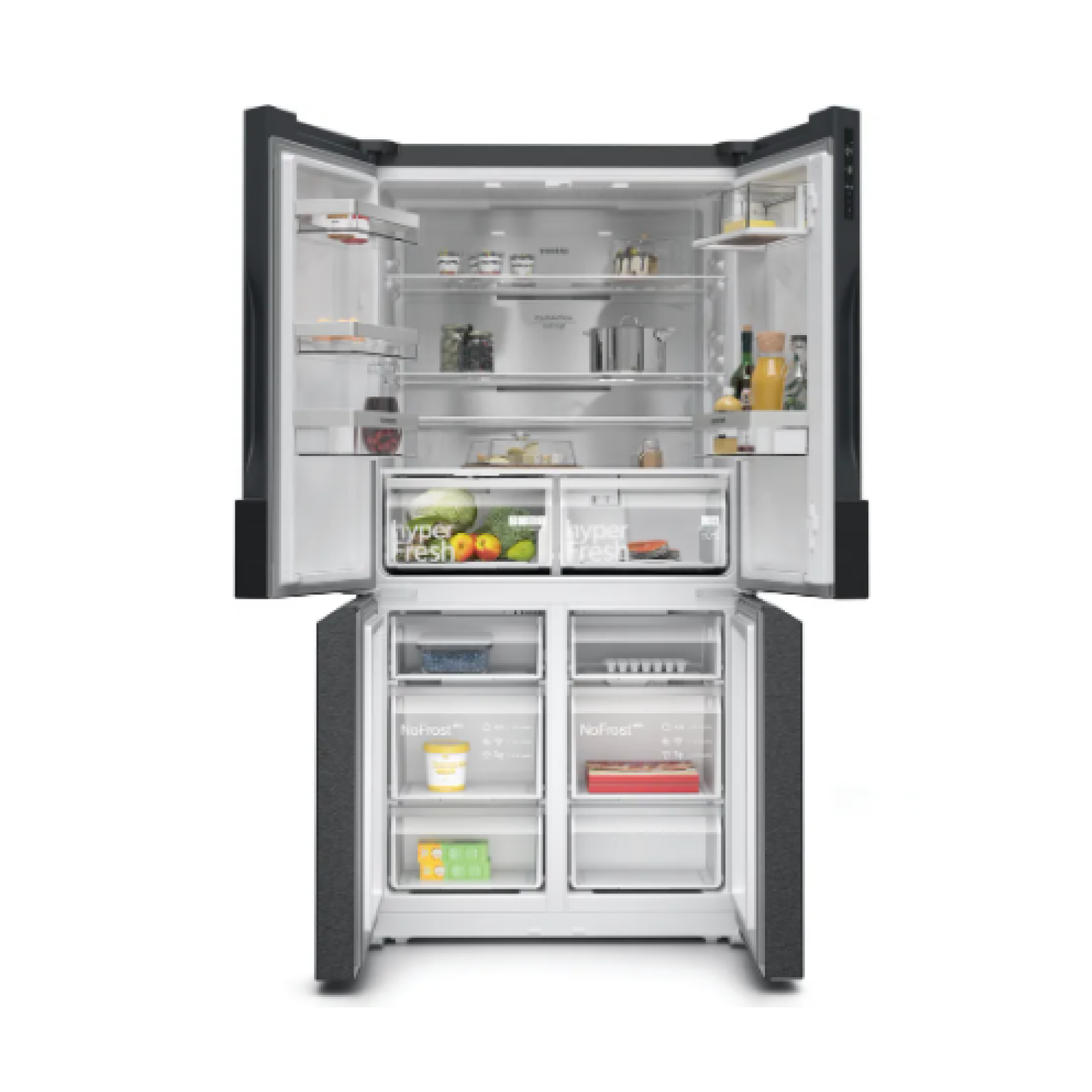 أبرز ما يميز هذه الثلاجة هو نظام Total noFrost المتكامل الذي يلغي الحاجة إلى عملية إذابة الجليد يدوياً إلى الأبد، حيث يمنع تكون الصقيع في أقسام التبريد والتجميد على حد سواء. كما تدعم تقنية hyperFresh المصممة للحفاظ على نضارة المواد الغذائية لفترة أطول.