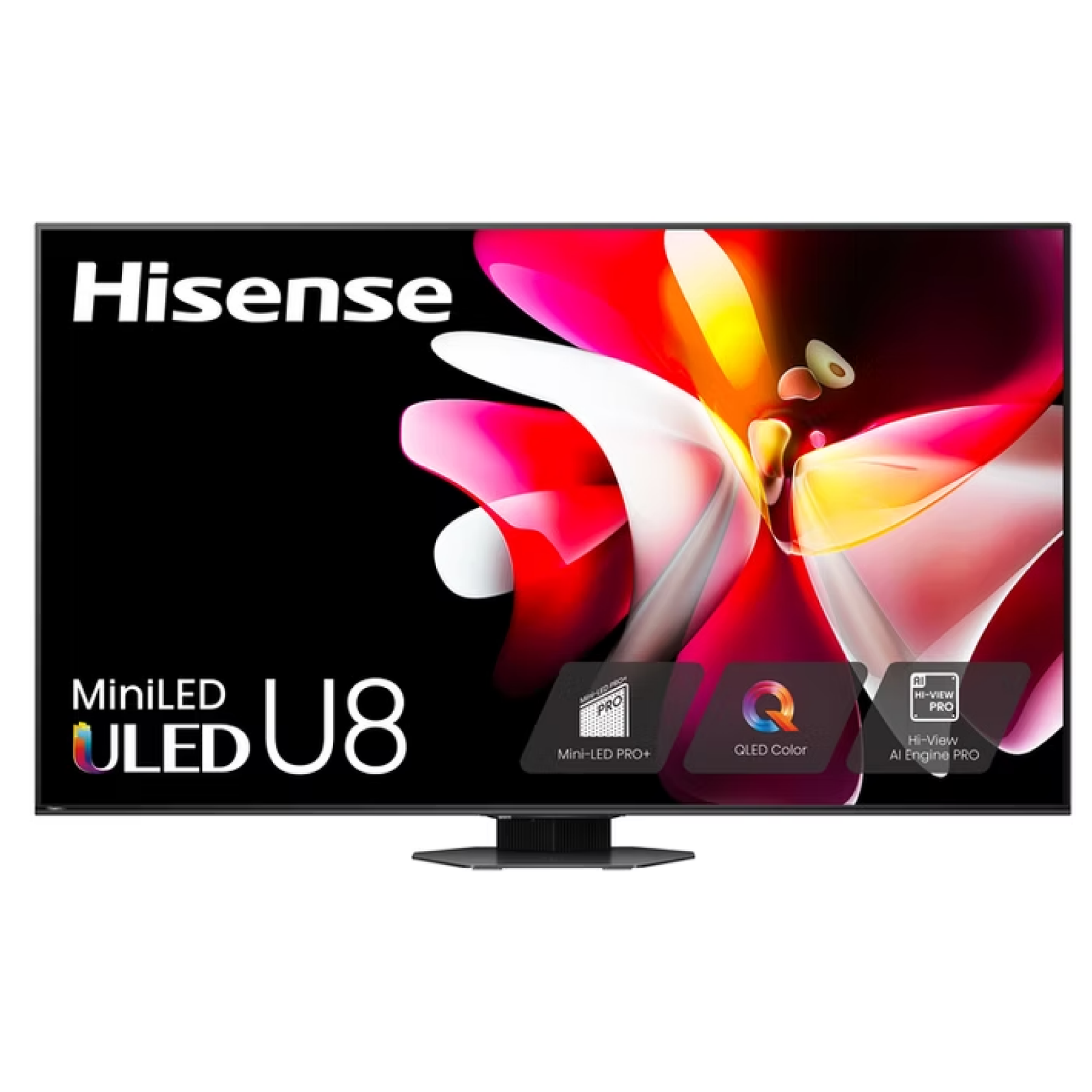 تلفزيون Hisense U8N 65 إنش Mini-LED ULED 4K يوفر سطوعًا 3000 نيتس مع 1600 منطقة تظليل، Dolby Vision IQ، وGame Mode Pro 144 هرتز، مثالي للرياضة والألعاب.